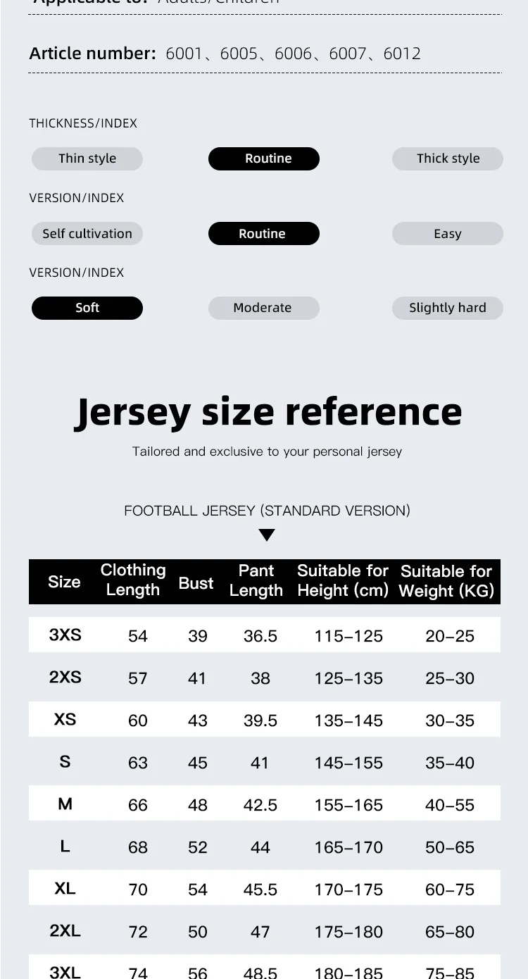 Kids size 3XS: suitable for kids height 115-125cm, weight 20-25kg;