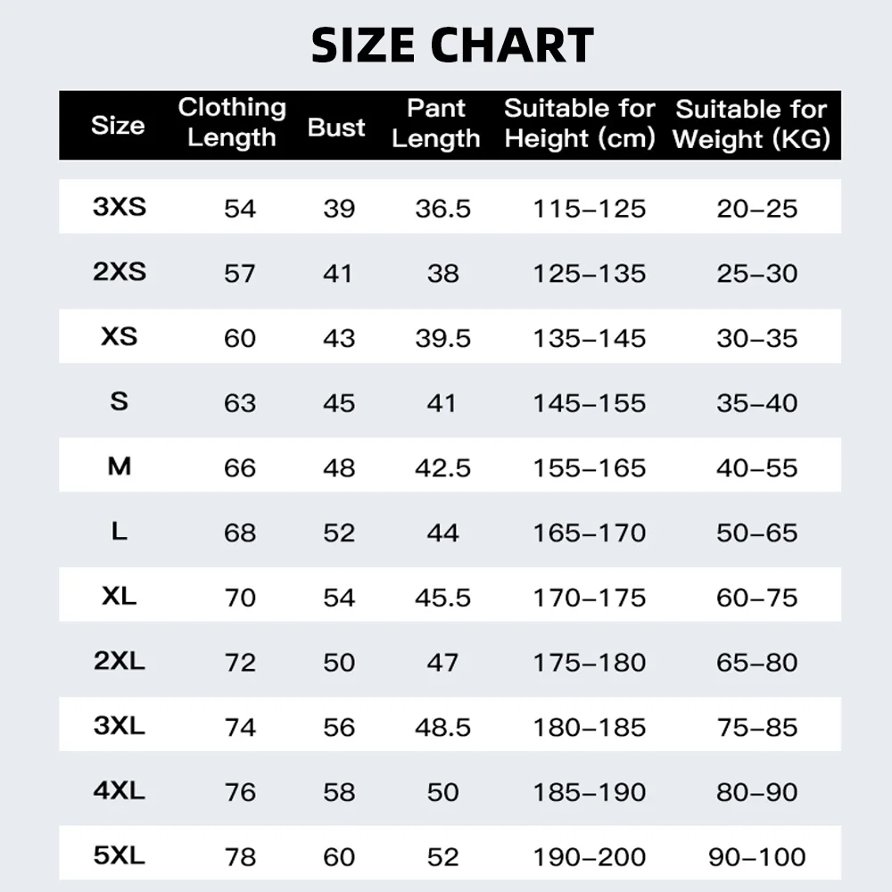 Size 5XL: suitable for height 190cm-200cm, weight 90-100kg.