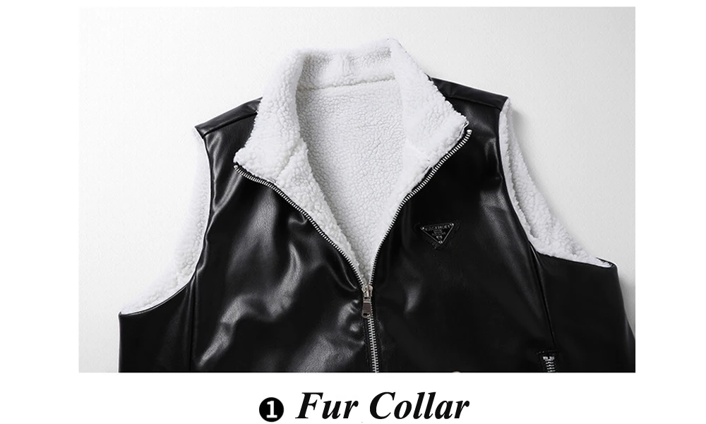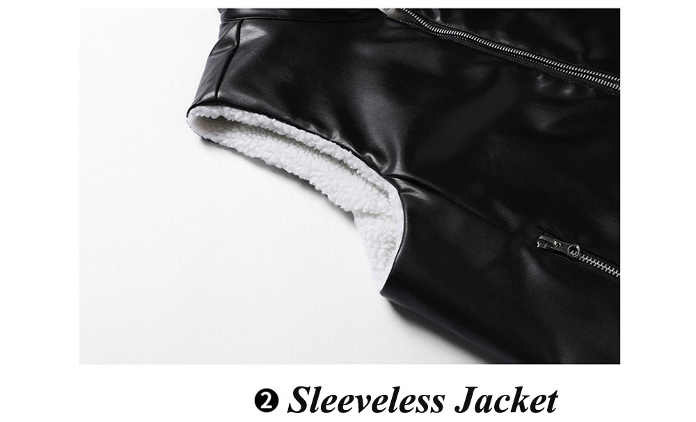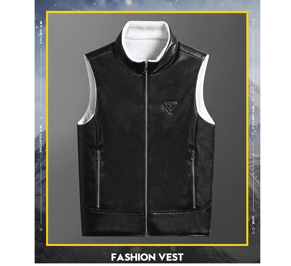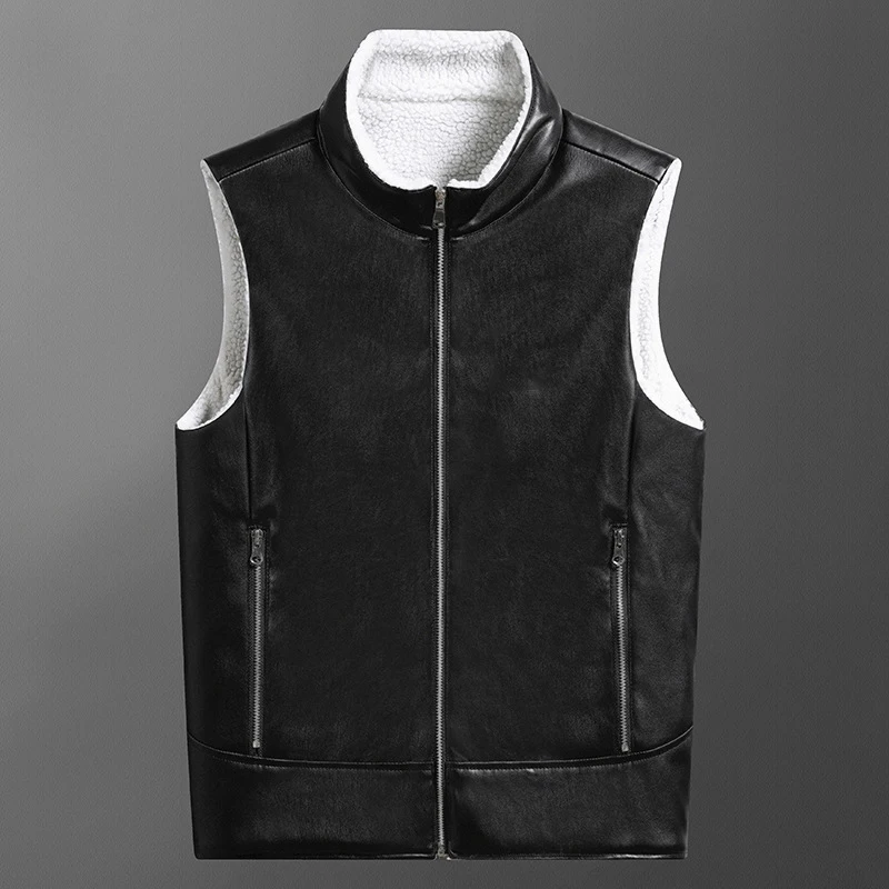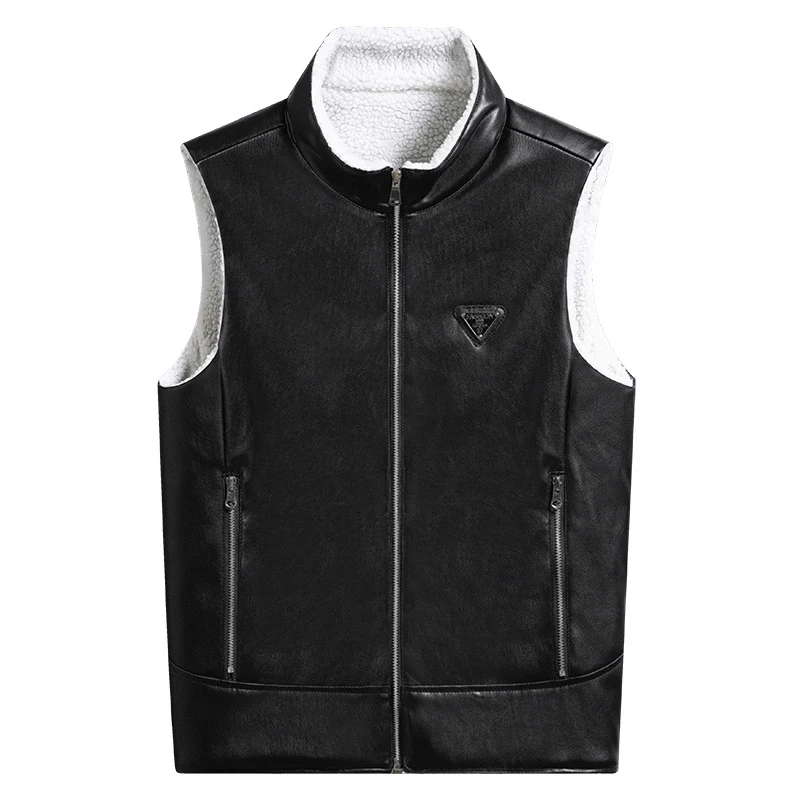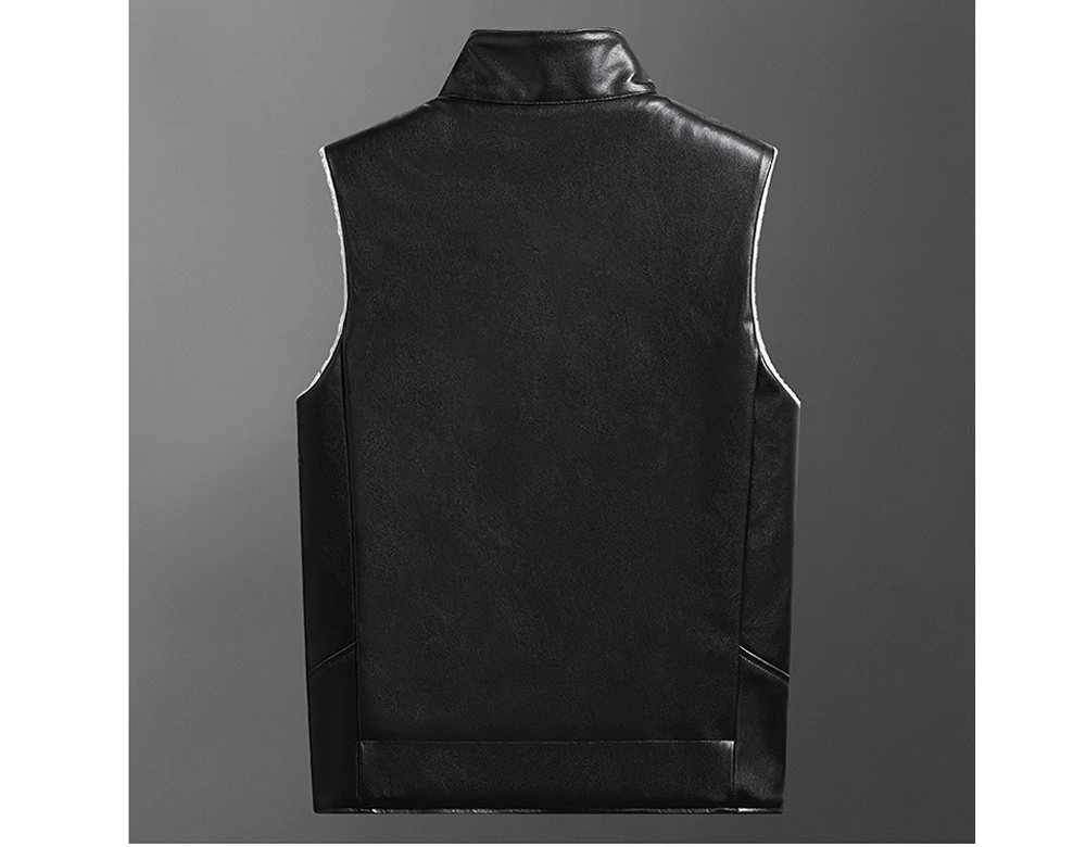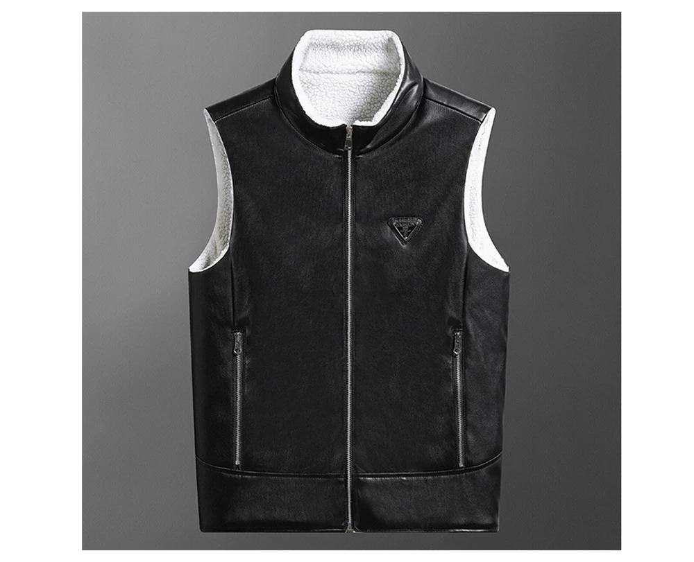 Autumn Winter Men's PU Leather Vest Fashion Men Retro Fleece Lined Warm Waistcoats Men Windbreaker Leather Sleeveless Jacket