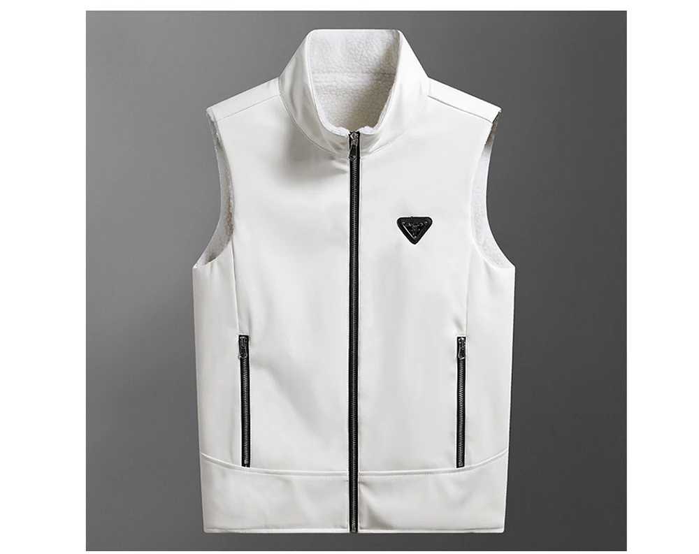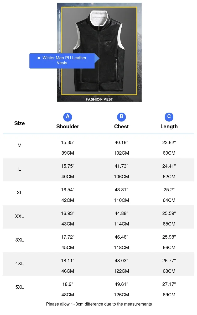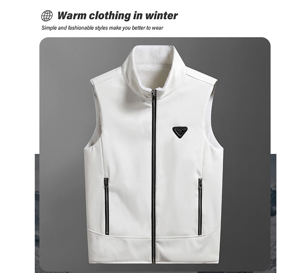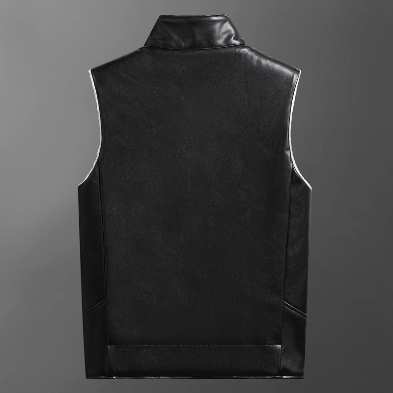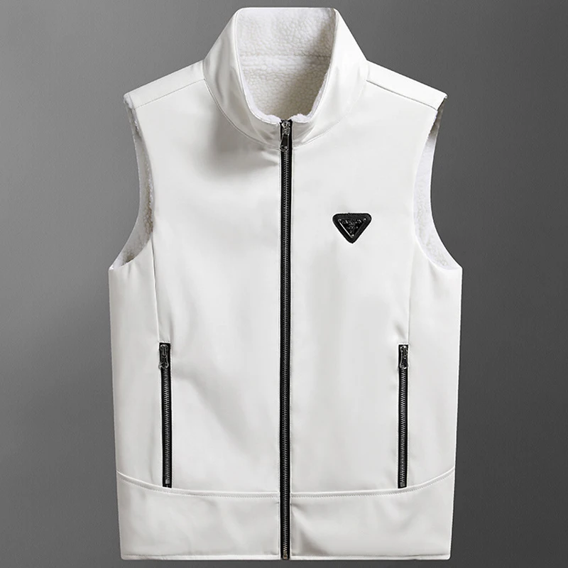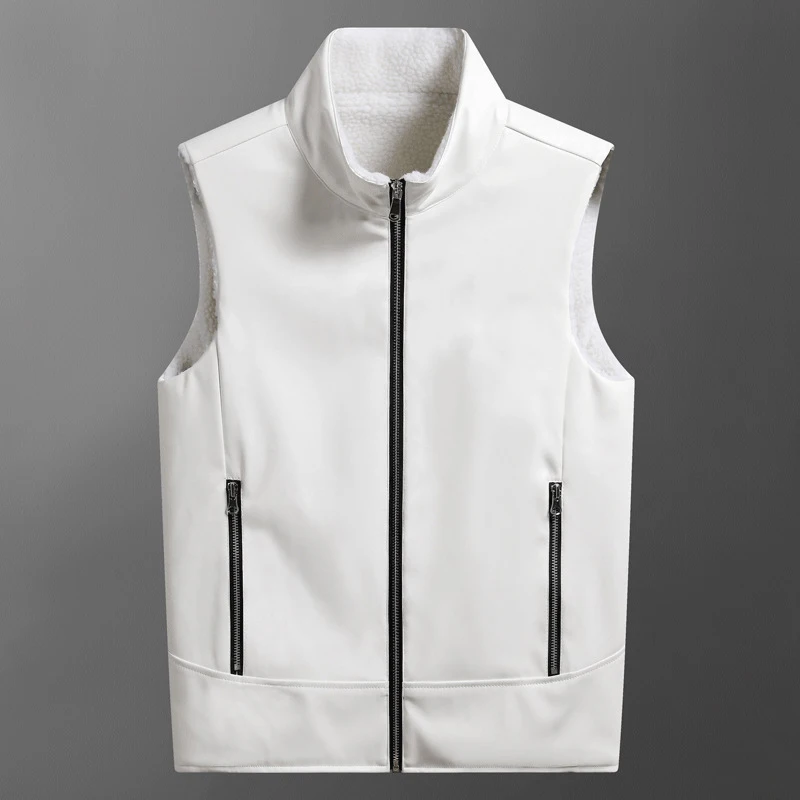 Autumn Winter Men's PU Leather Vest Fashion Men Retro Fleece Lined Warm Waistcoats Men Windbreaker Leather Sleeveless Jacket