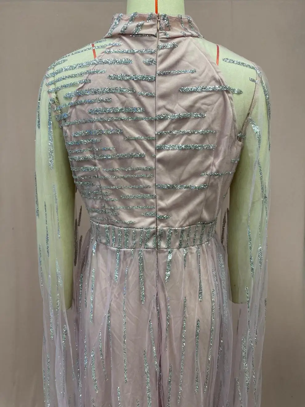 Evening Dress,Formal Dress,Prom Gown,Wedding Guest Dress,Elegant Tulle Dress,Sparkle A-Line Gown,High Neck Evening Attire,Floor Length Sequin Dress,Sleeveless Sparkling Gown,Flying Sleeves Design,Sequin Tulle Dress,2025 Custom Sparkle Gown,Dramatic Flying Sleeves Dress,Formal Sequin Attire,Glittering Wedding Guest Dress,A-Line Flying Sleeves Gown,Chic High Neck Design,Tulle Party Dress,Sparkling Floor Length Dress,Bridal Guest Sequin Gown