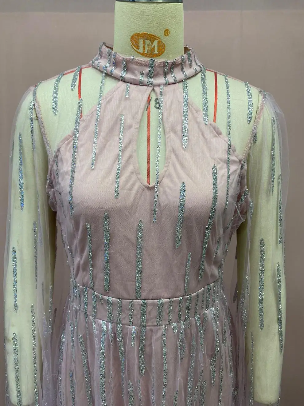 This Flying Sleeves Wedding Guest Dress Elegant Tulle A-Line High Neck Sequin Party Attirebuilt in bra, fitted,skin-friendly, comfortable,absolutely gorgeous,Makes You Very Attractive And  special at the Party.