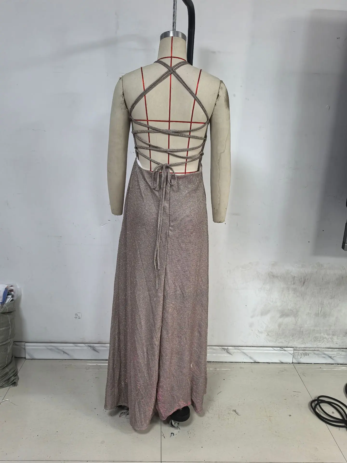 Female Evening Dress Dress 2025 Fashion New Spring And Autumn High Street Suspender Backless Sexy Split Flash Party Banquet