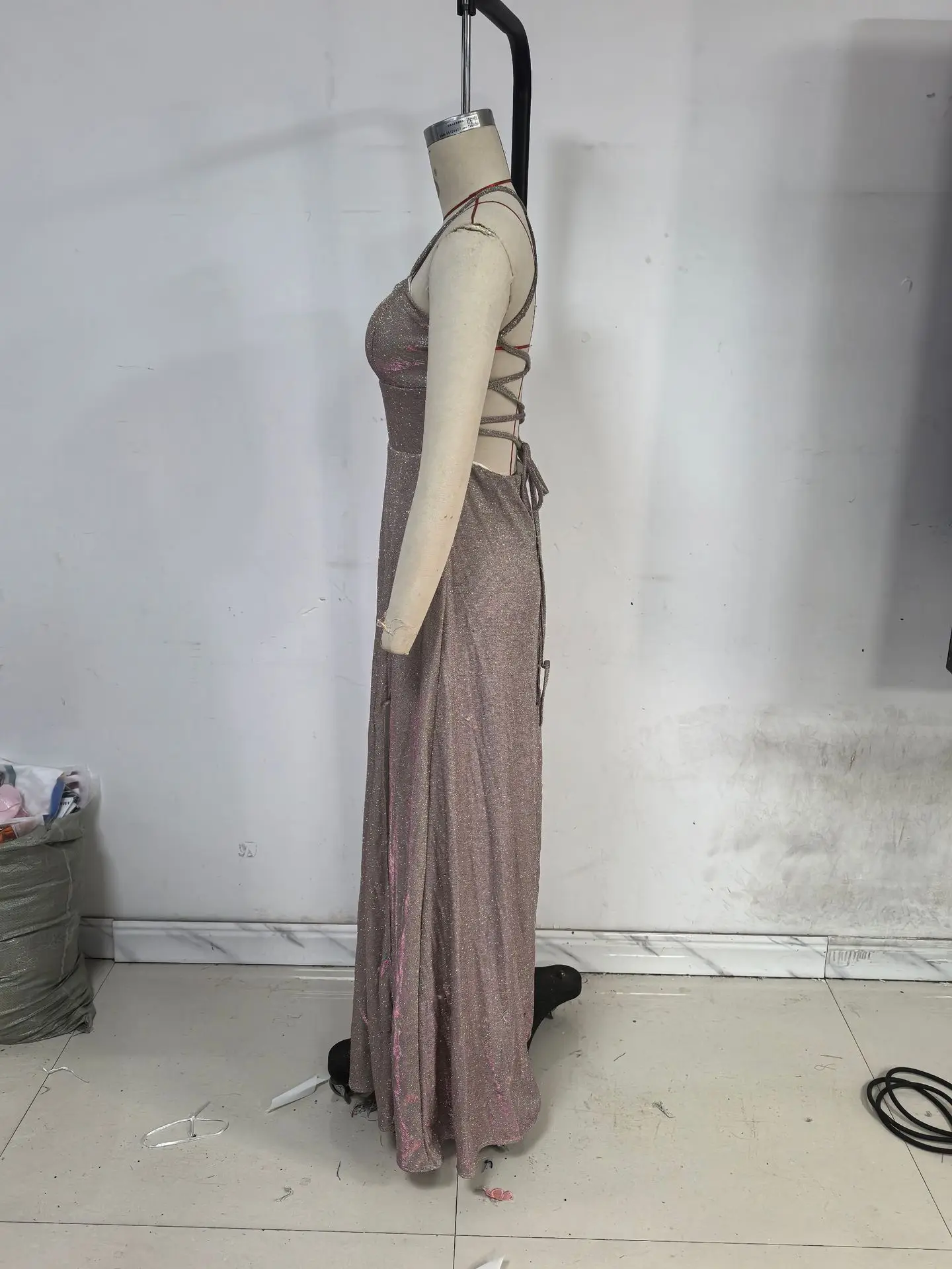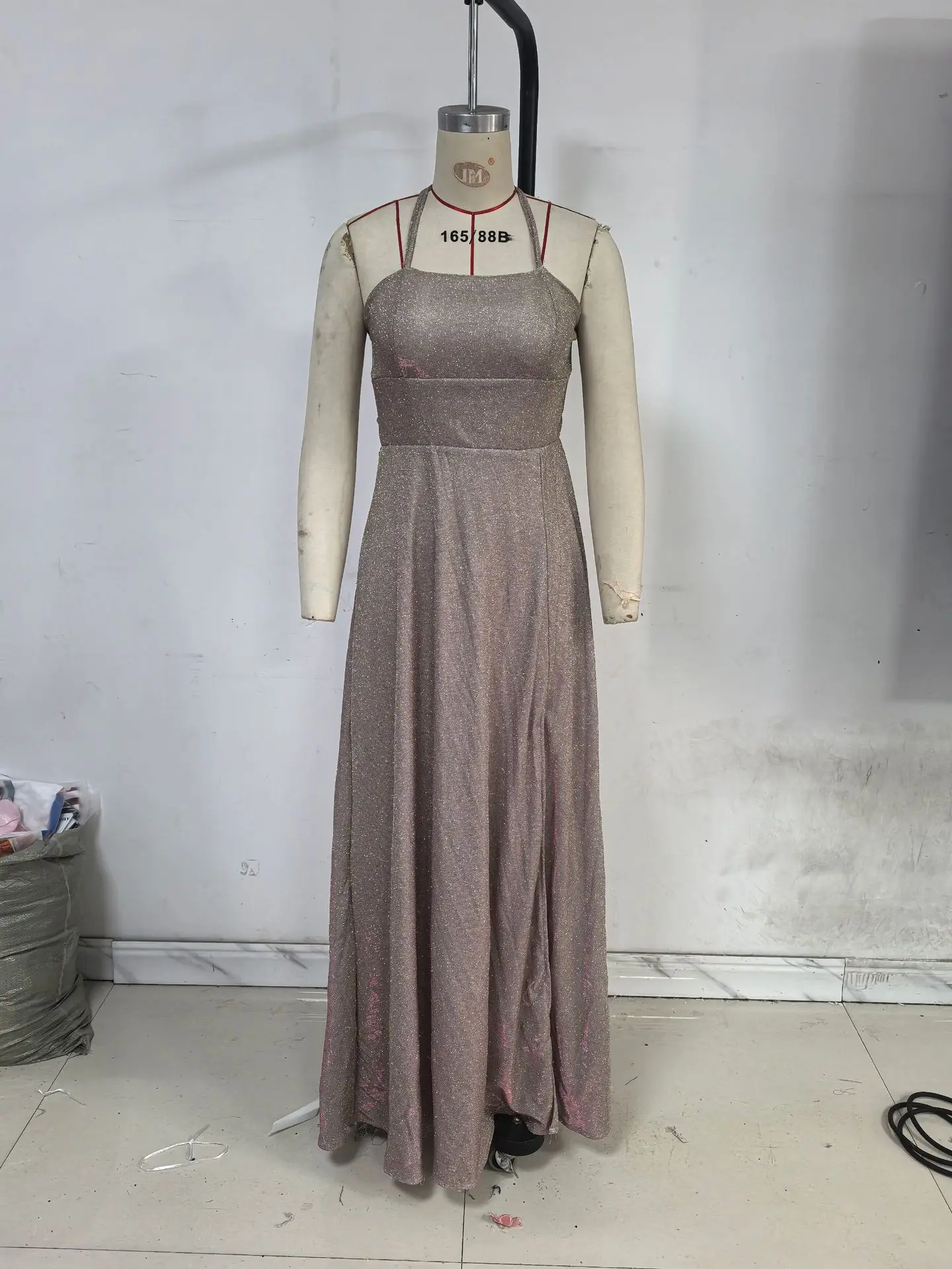 Female Evening Dress Dress 2025 Fashion New Spring And Autumn High Street Suspender Backless Sexy Split Flash Party Banquet