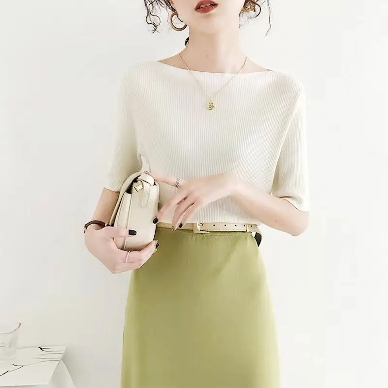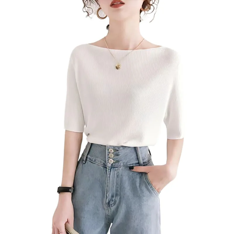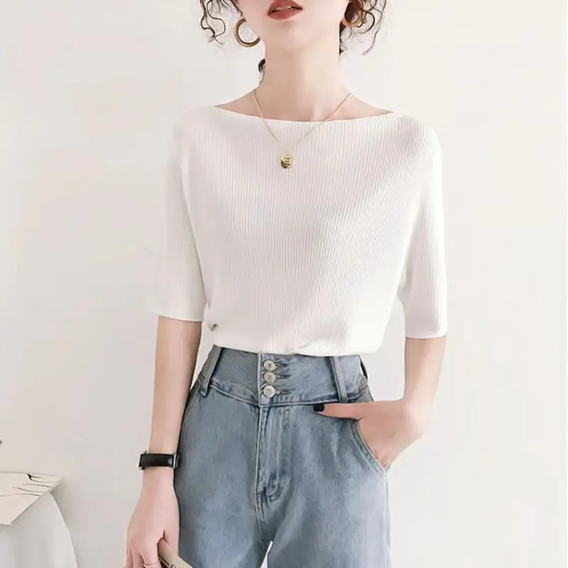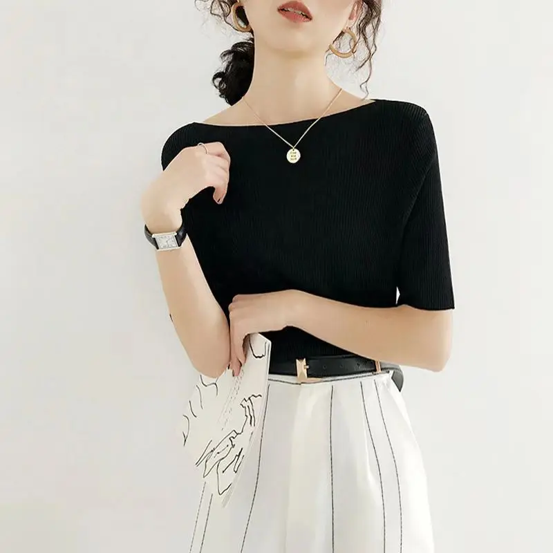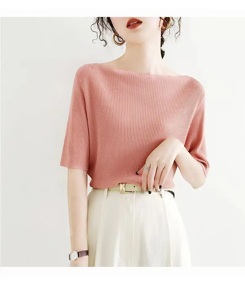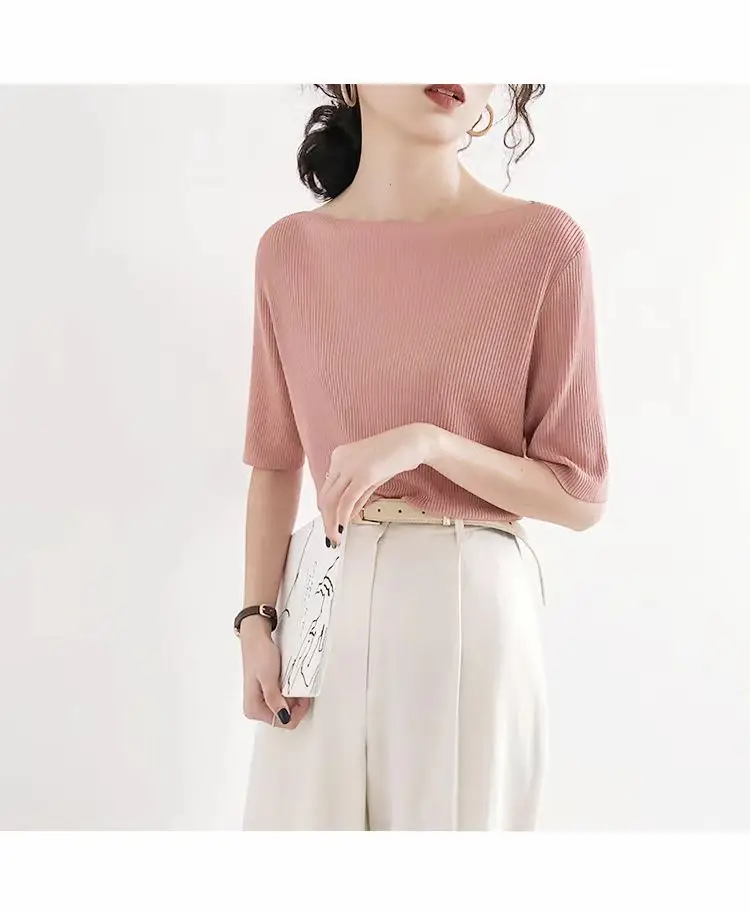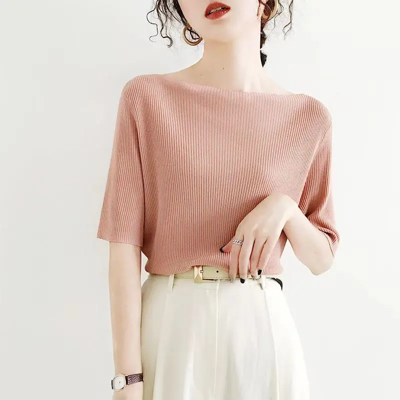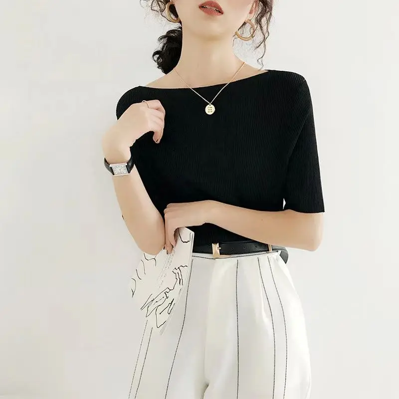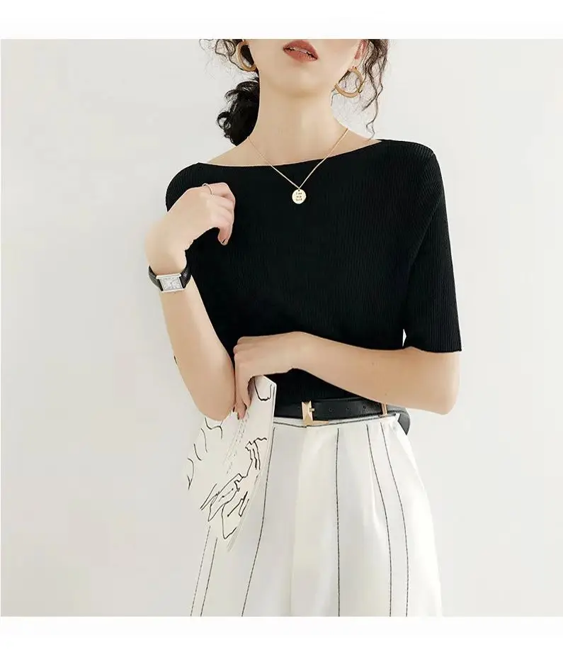 Be the first to review “Korean Style Off-Shoulder Ice Silk Knitted Top Women’s Inner Wear Gentle Five-Sleeve Design Sensation Small Audience”