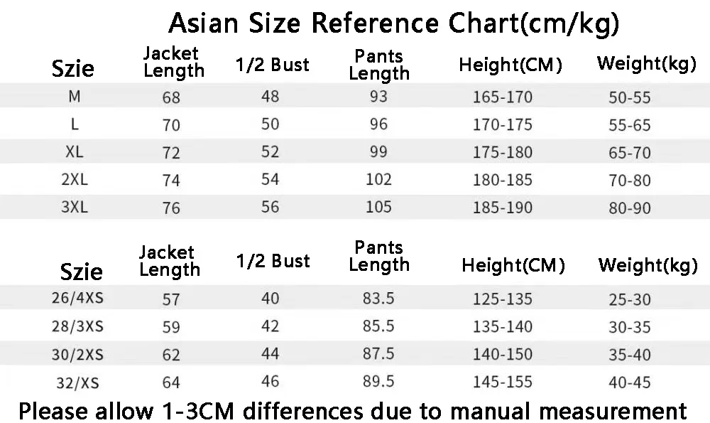 Asian size 3XL for height 185-190cm weight 80-90kg,