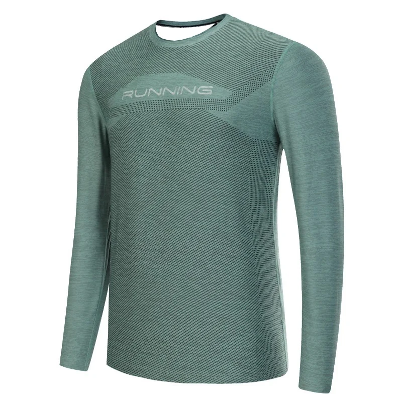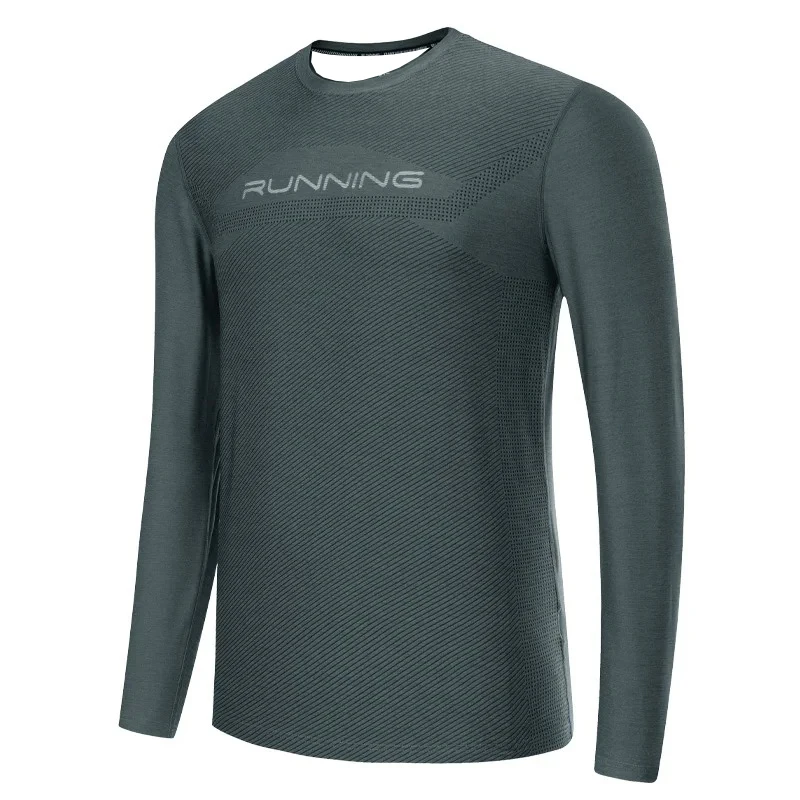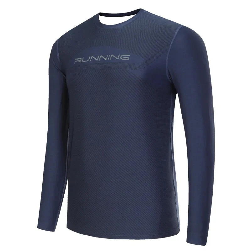 Men’s long-sleeved running T-shirt, jogging print quick-drying inner shirt, outdoor stretch training sports T-shirt, short-sleev