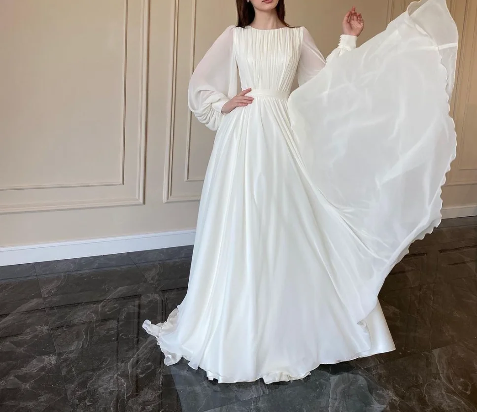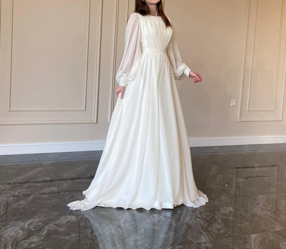 New Spring Fashion Lantern Sleeve O-Neck Solid Color Slim Fit Floor-Length Ball Gown Dress For Women