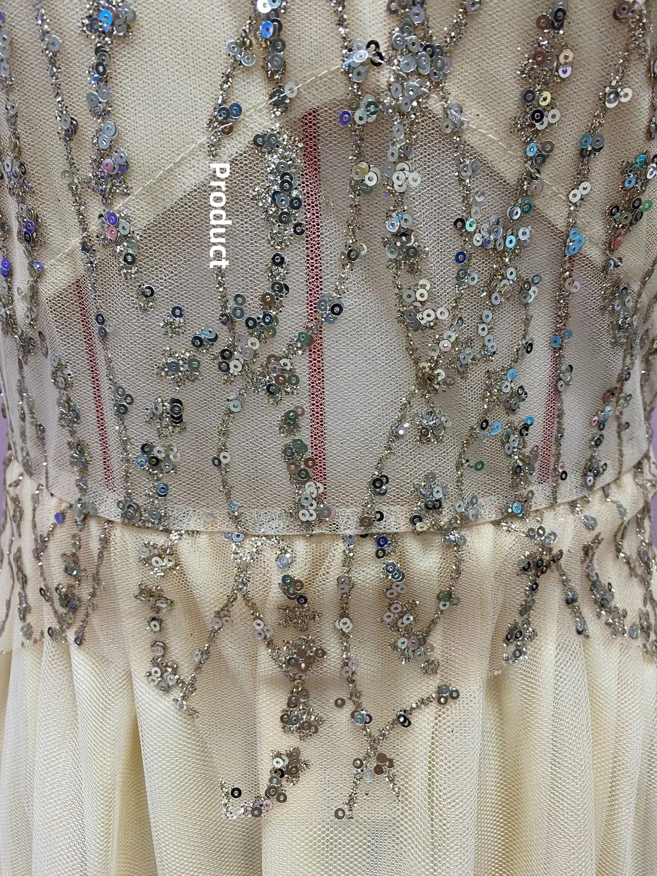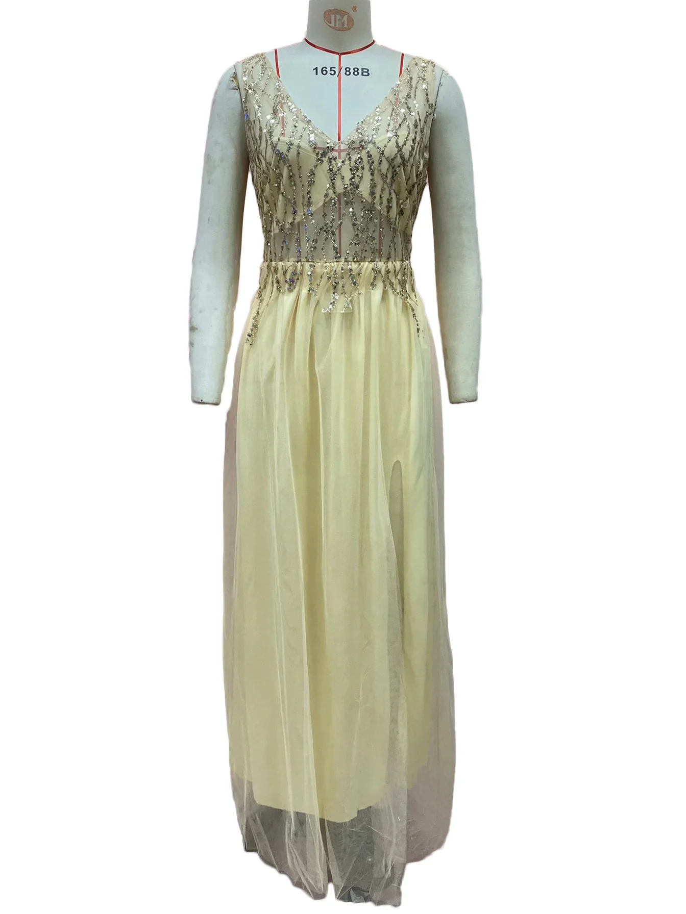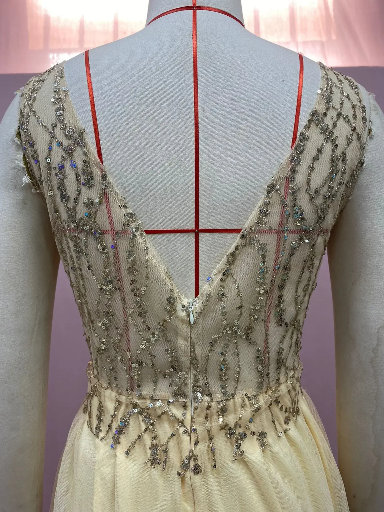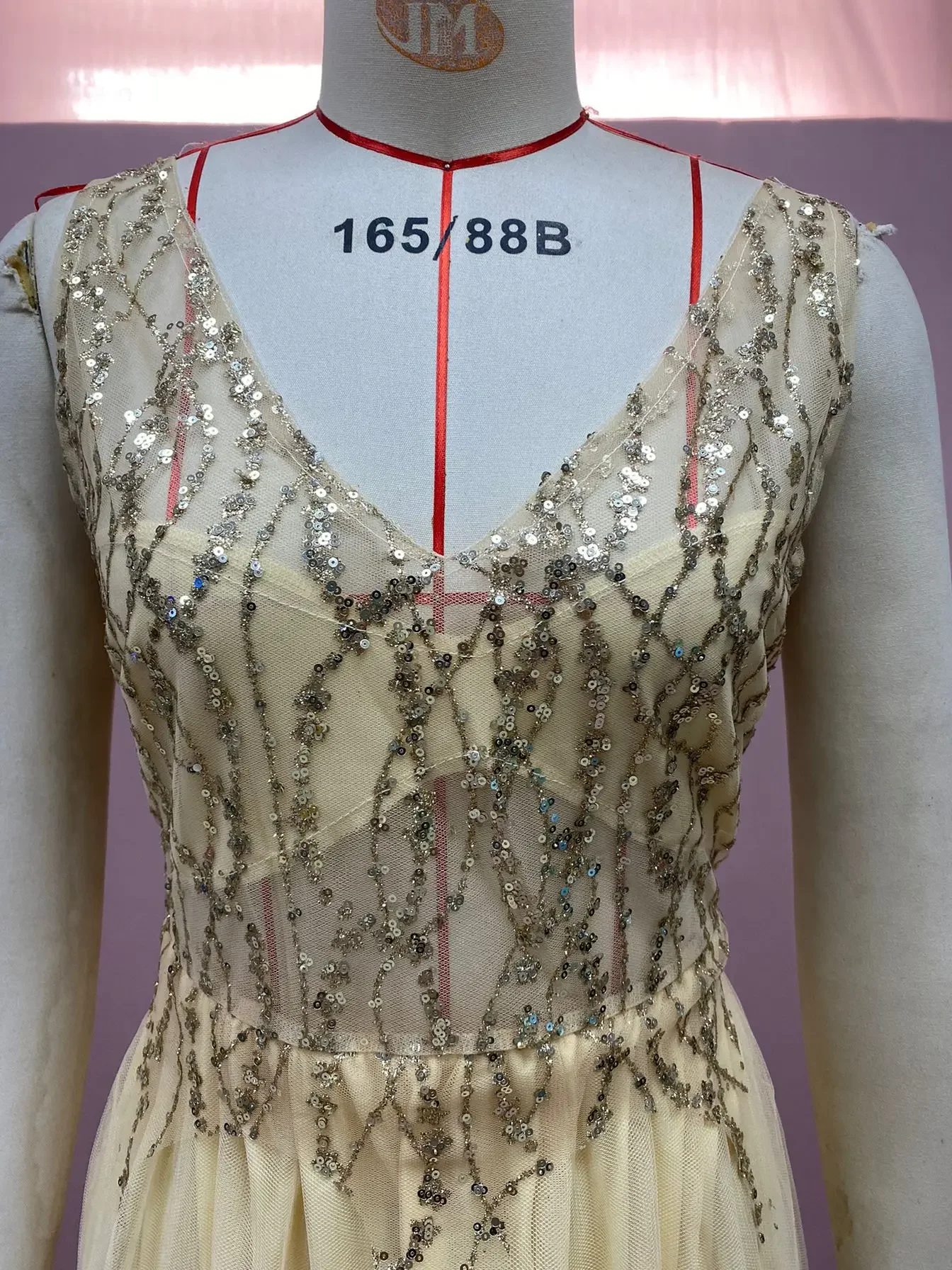 • Golden V-neck Design :The golden V-neck design of the dress adds a touch of elegance and sophistication, making it perfect for formal events or weddings.