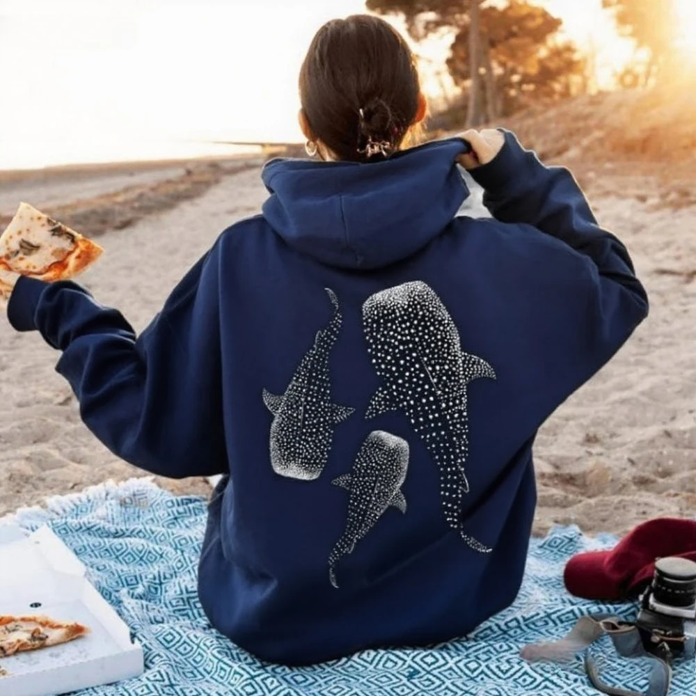 Whale Shark Hoodie Ocean Inspired Style Sweatshirt for Ocean Lovers Gift Diving Girl Hoodie Coconut Beachy Girl Pullover
