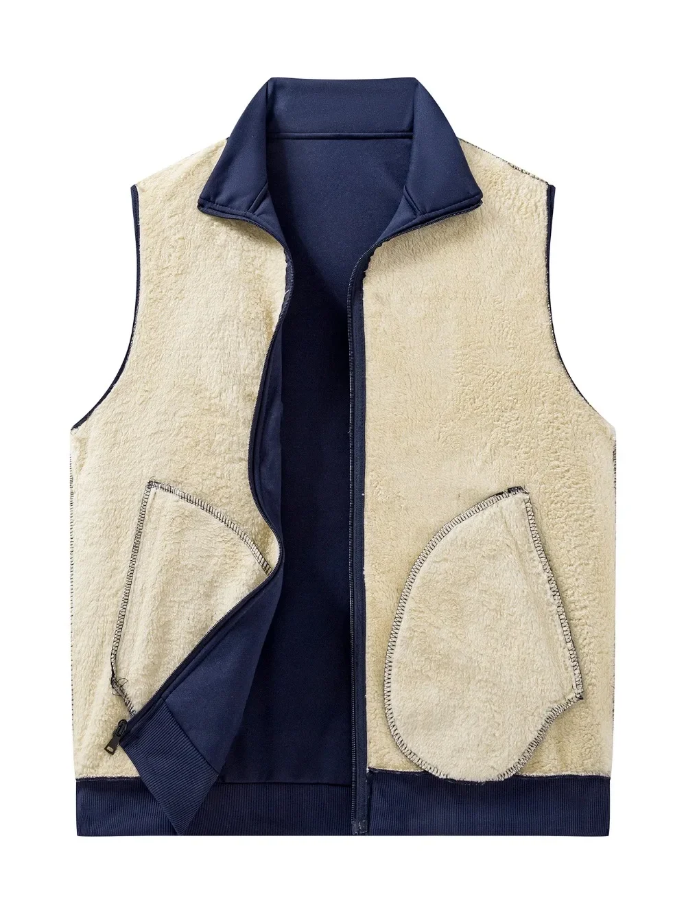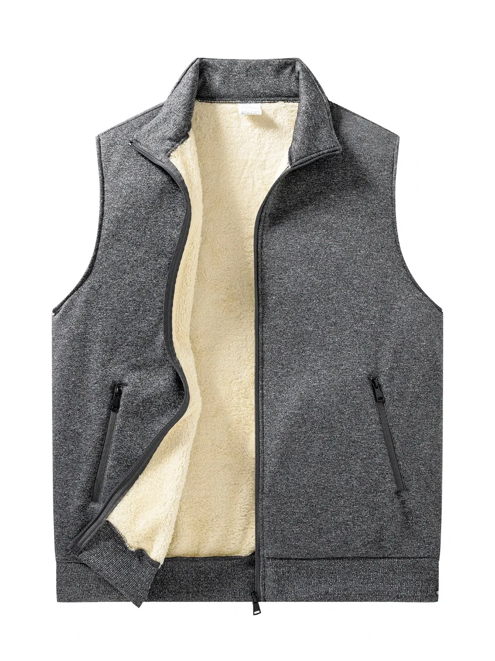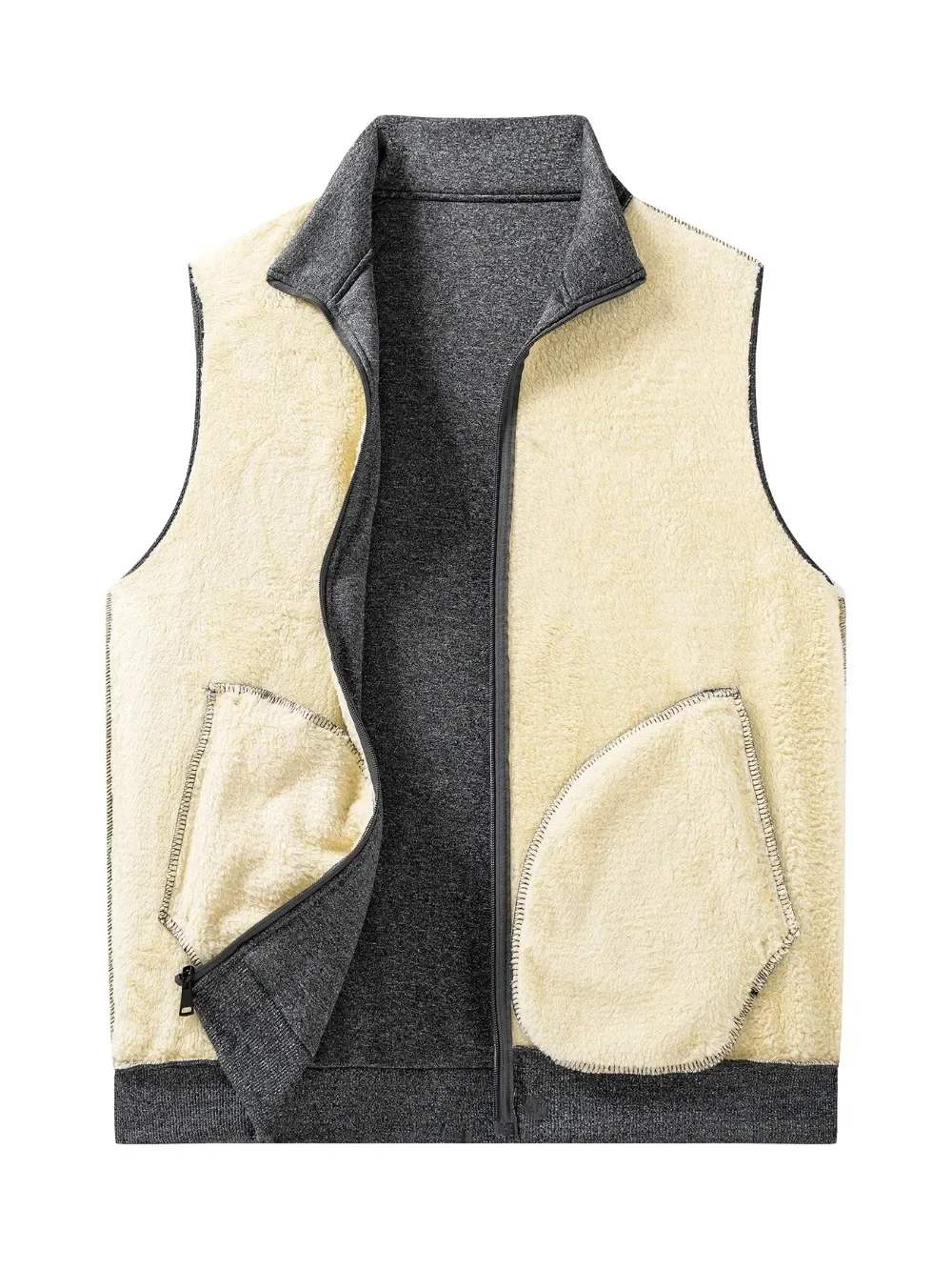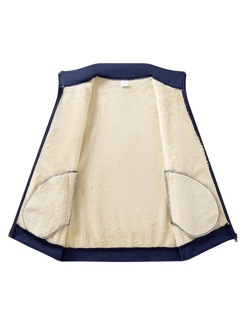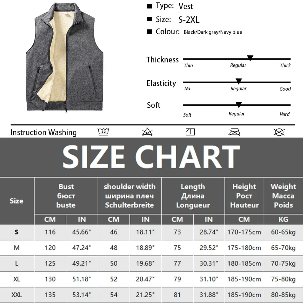 Winter Men’s Warm Jacket Vest Thickened Warm Casual Sleeveless Coats Standing Collar Zipper Solid Color Vest Male Athletic Tops