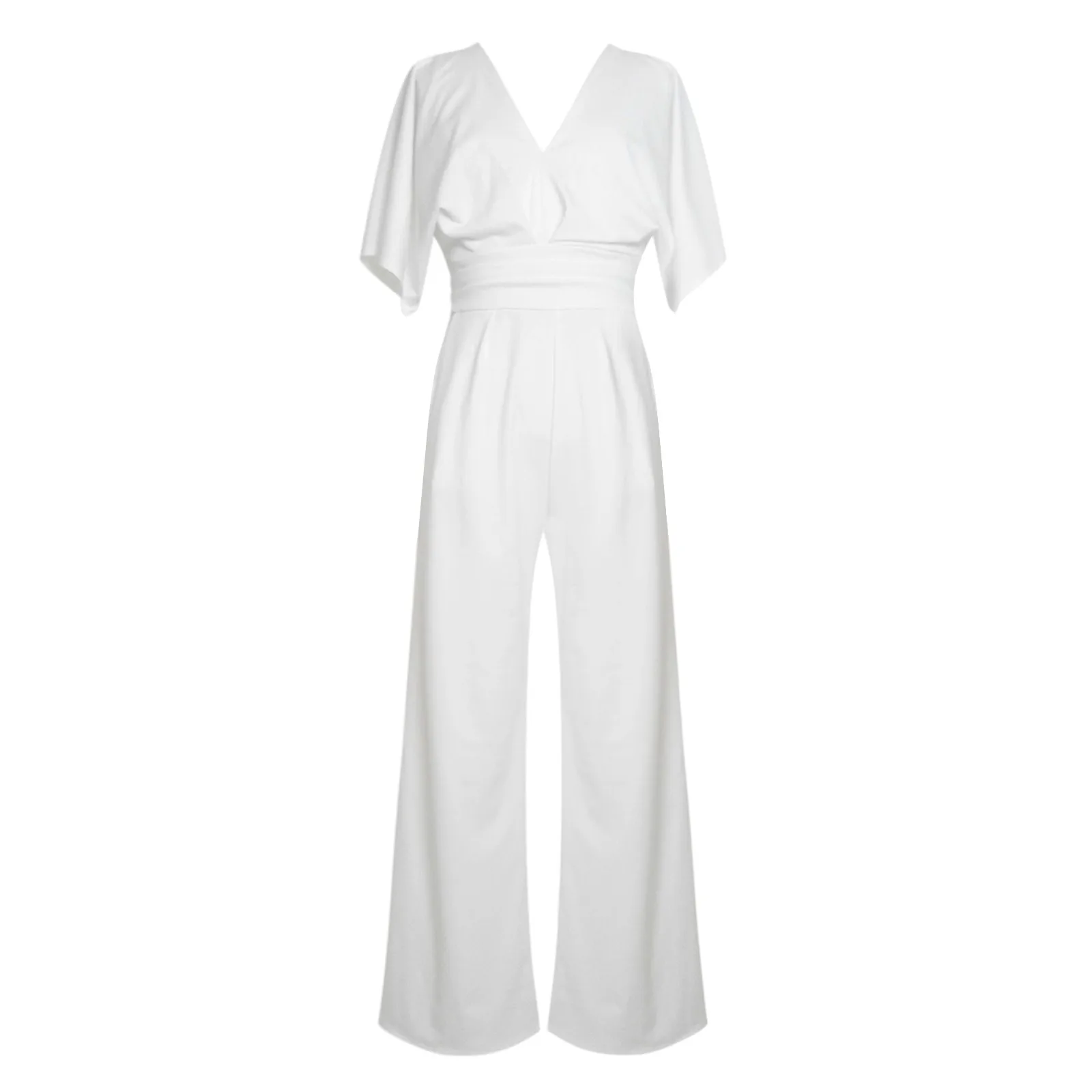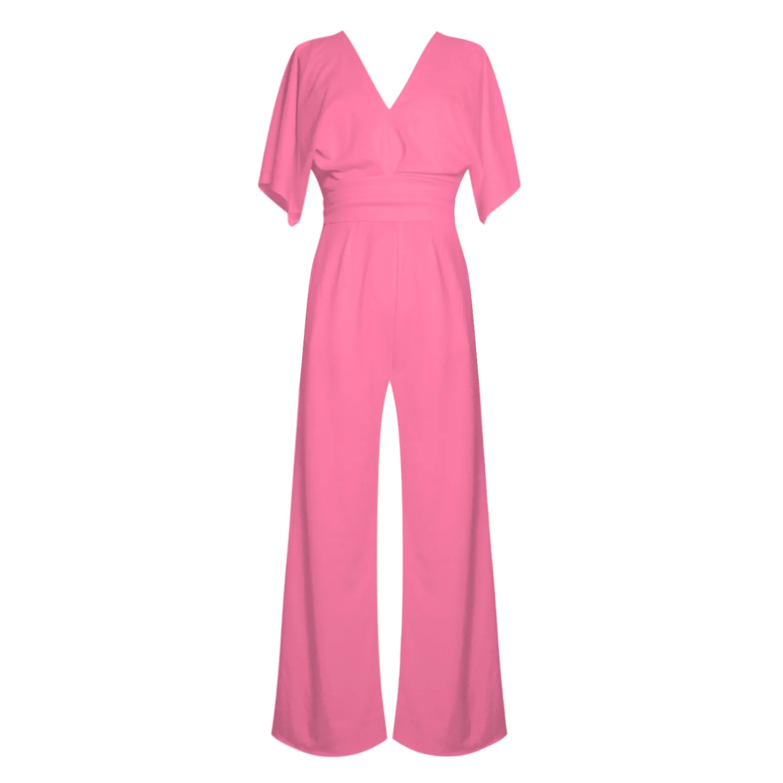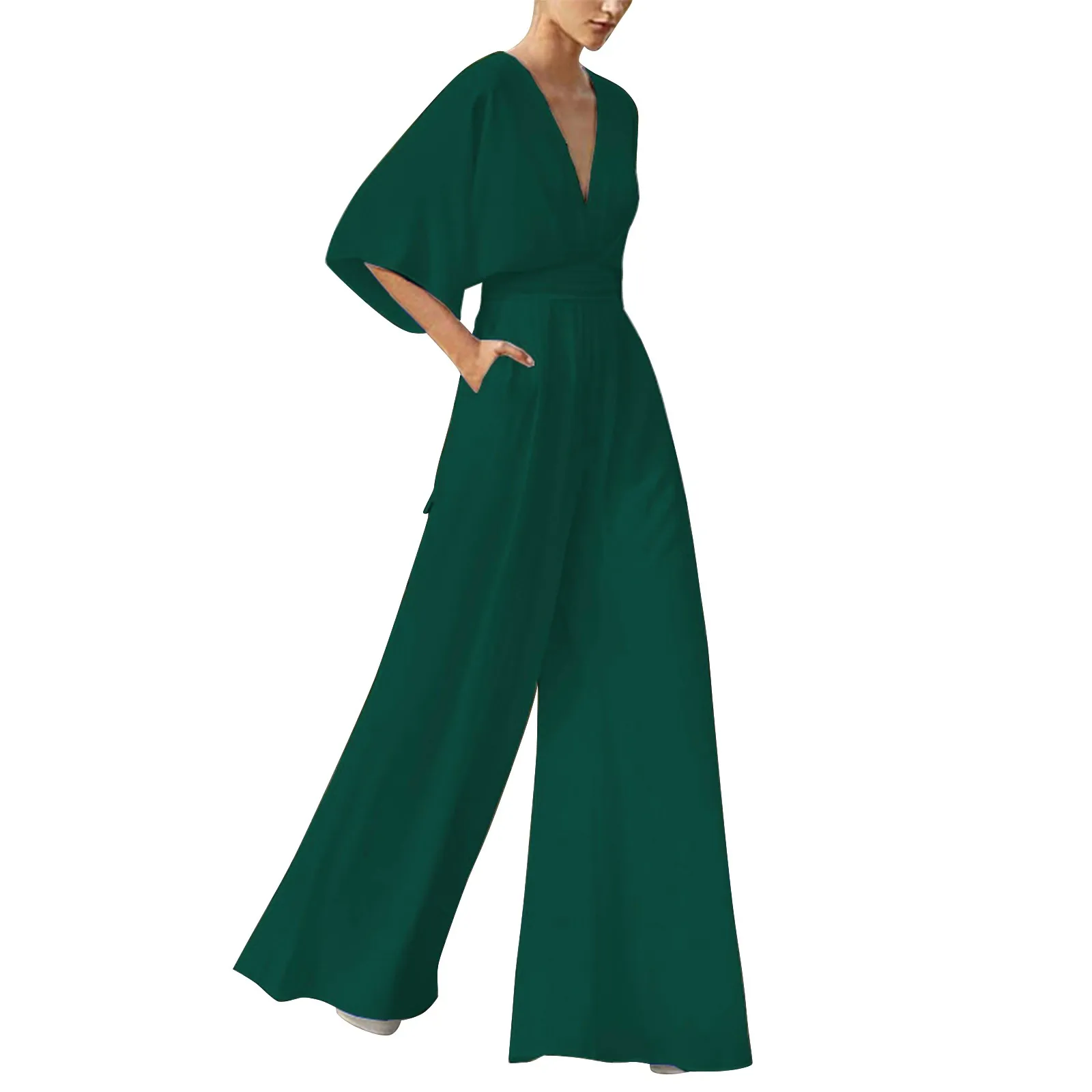 Women's Deep V Long Sleeve Casual Fashion High Waist Wide Leg Trousers
