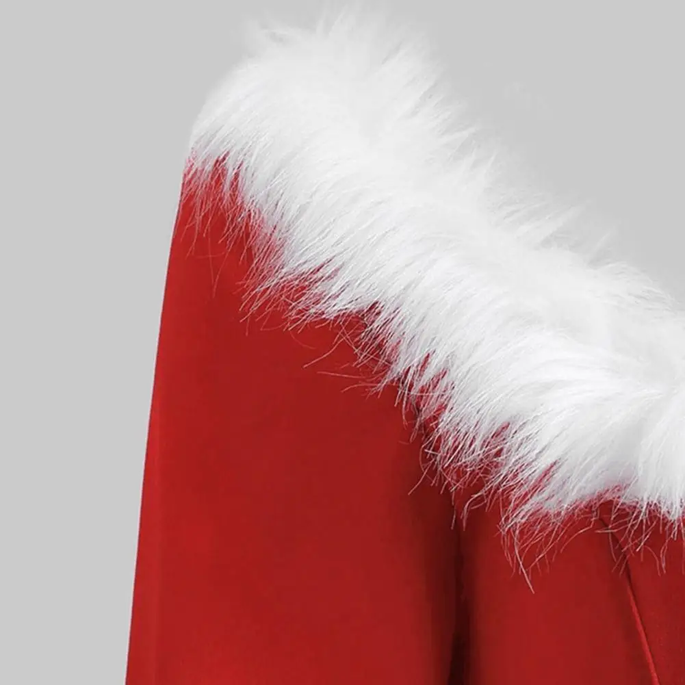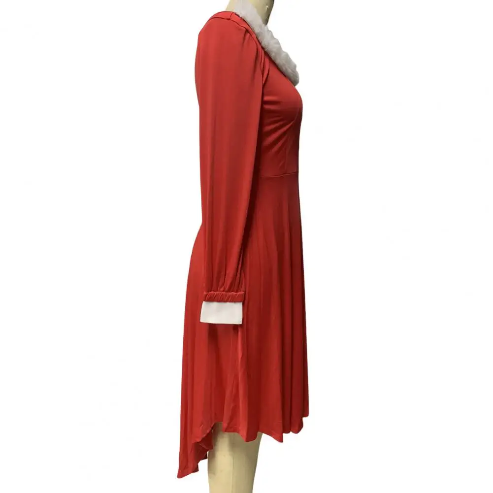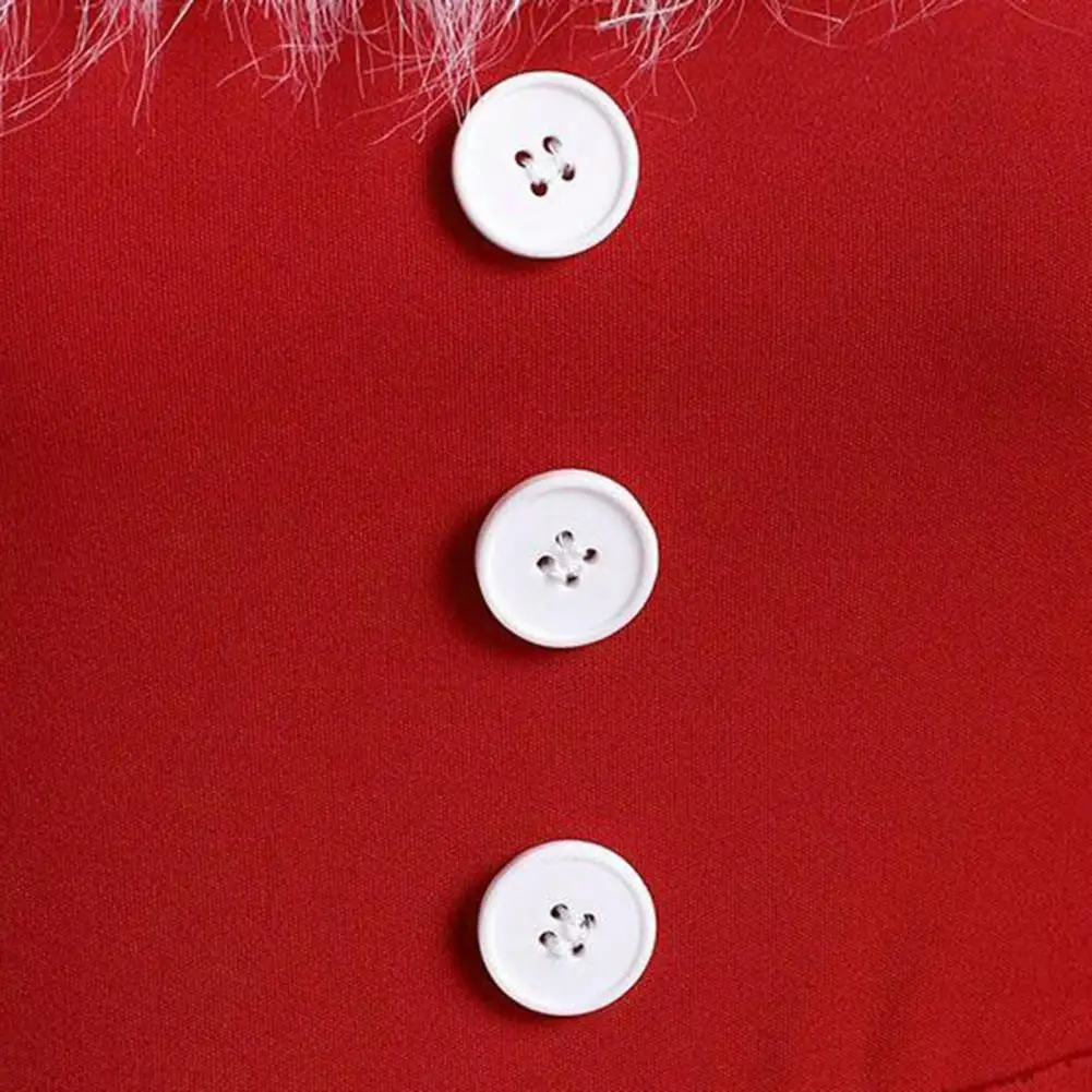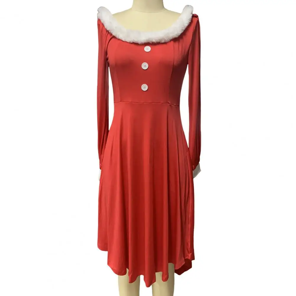 Christmas Performance Dress Fluffy Square Neck Pure Color A-line Irregular Hem Button Decor Festive Stage Show Santa Cosplay Costume New Year Party Maxi Dress
