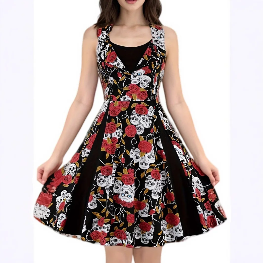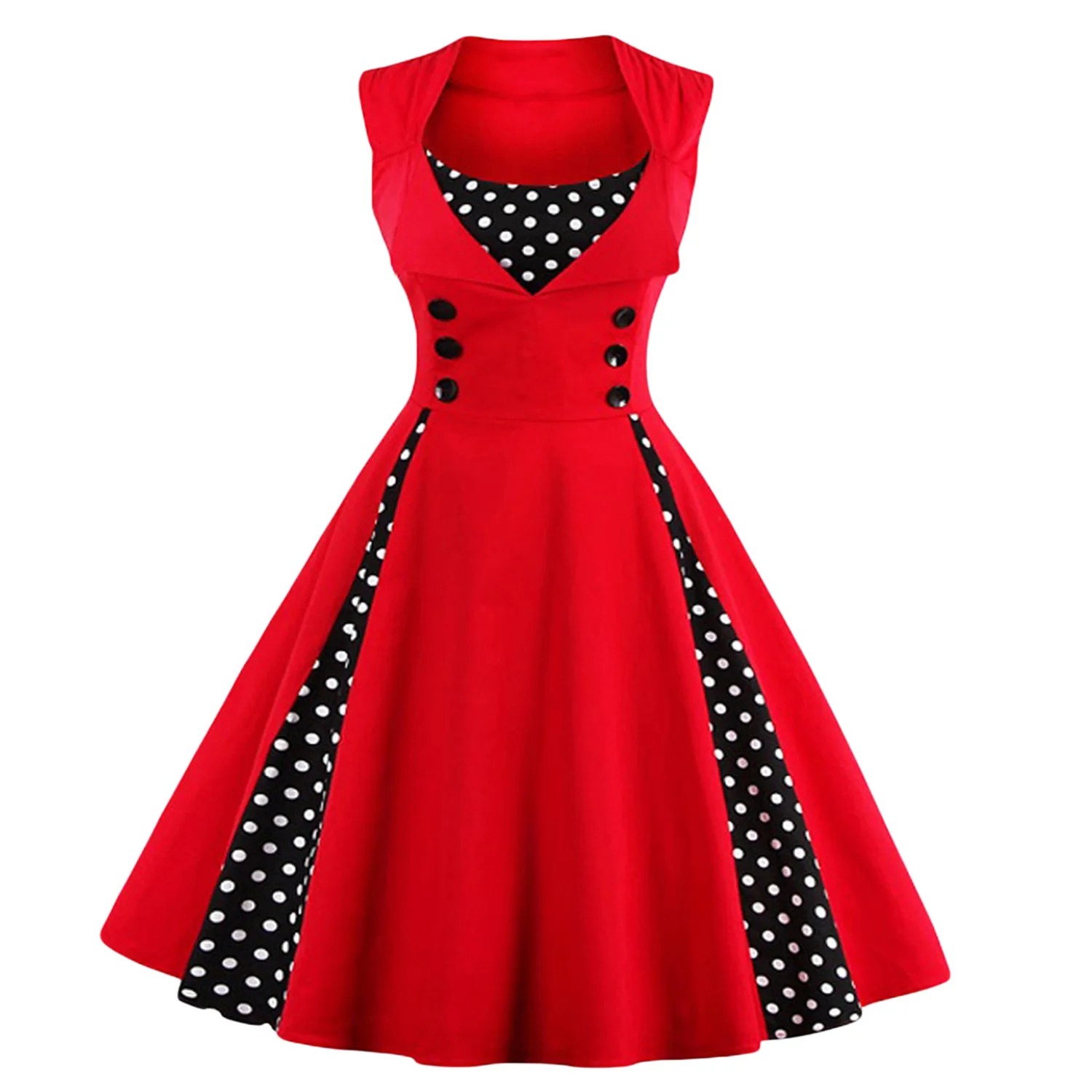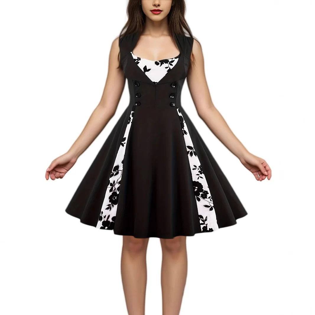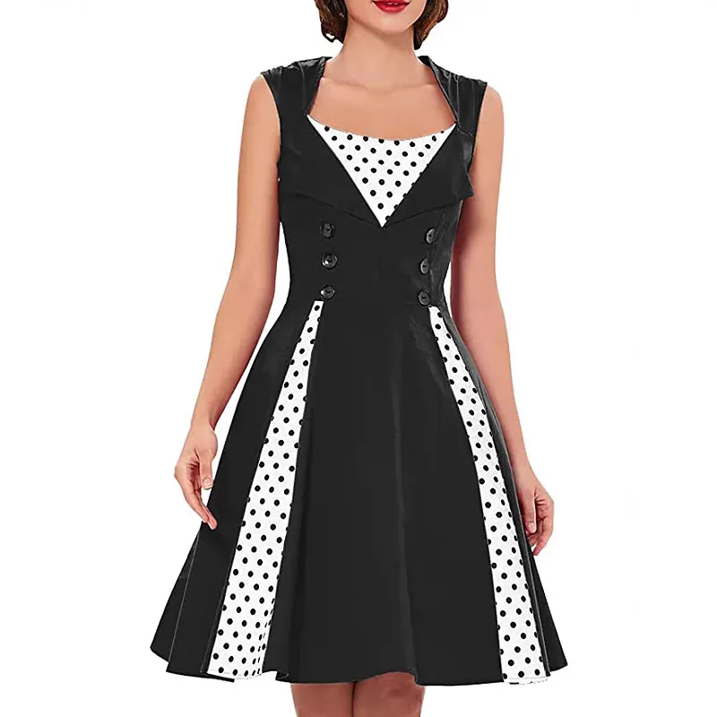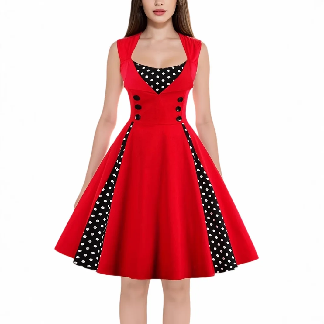 Women Vintage Dress Summer Polka Dot Swing Pin Up Party Retro Dresses Female Elegant High Waist Tunic Casual Swing Long Skirts