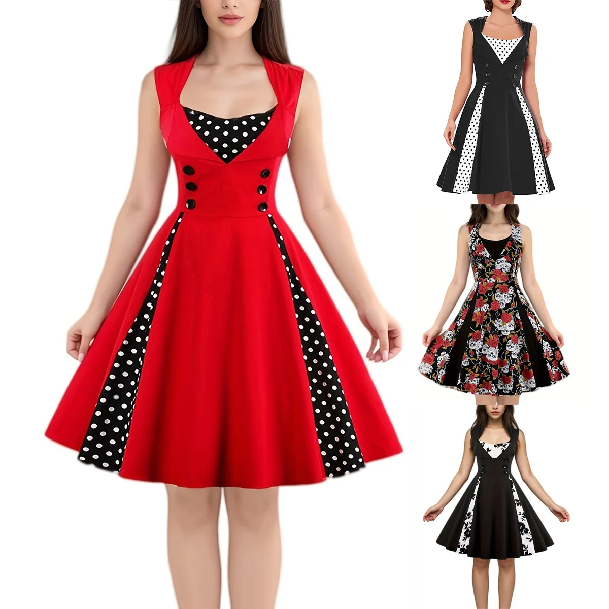Be the first to review “Women Vintage Dress Summer Polka Dot Swing Pin Up Party Retro Dresses Female Elegant High Waist Tunic Casual Swing Long Skirts”