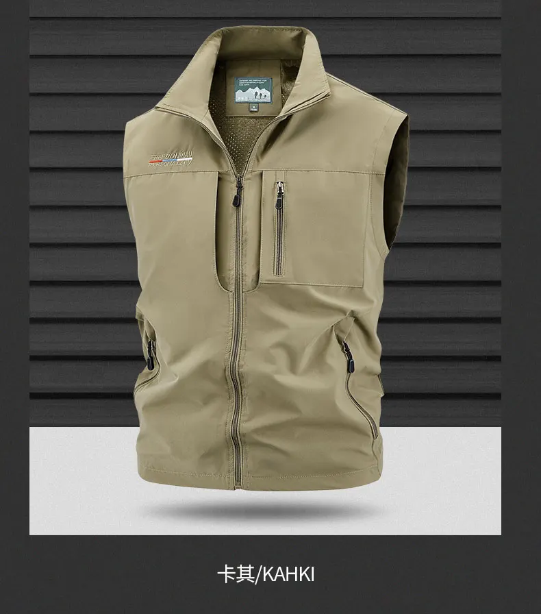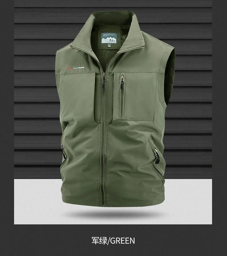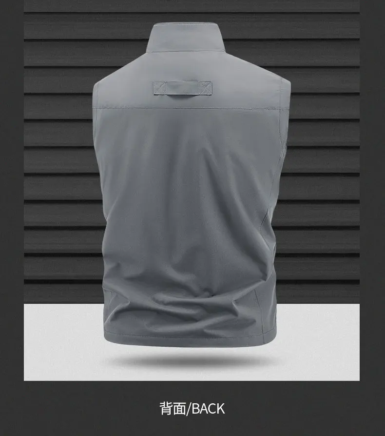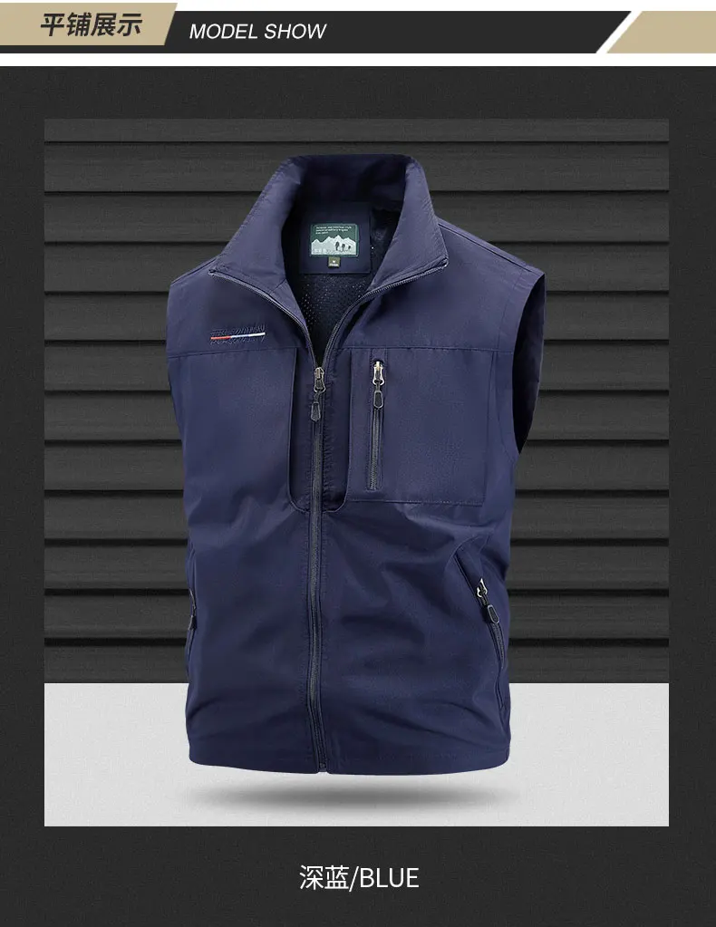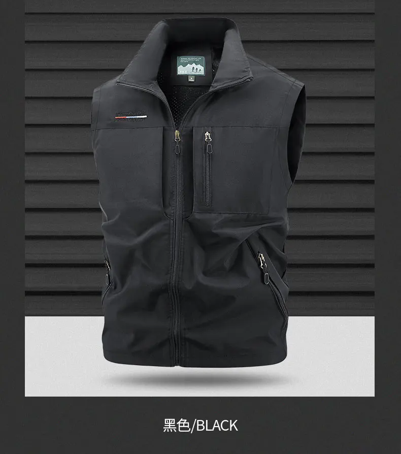 Working Thin Breathable Vest 2025 New Mesh Design Stand Collar Waterproof Sleeveless Jacket Multi-pocket Mountaineering Top 5XL