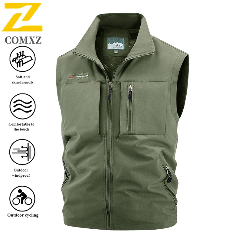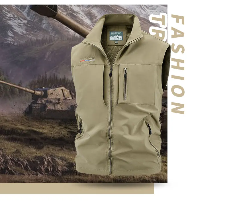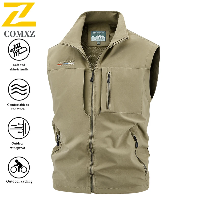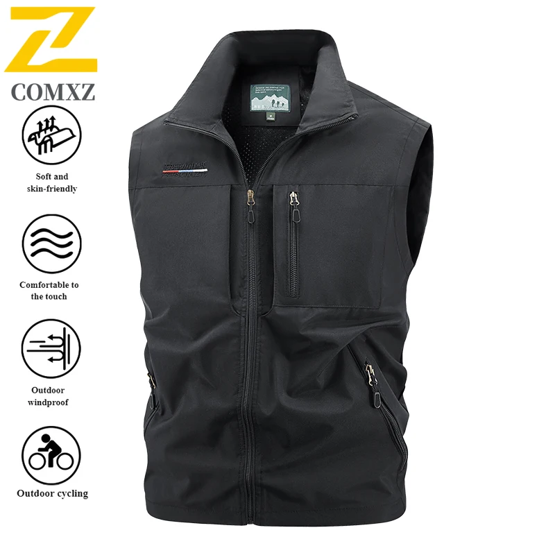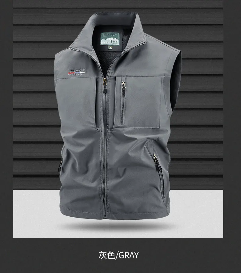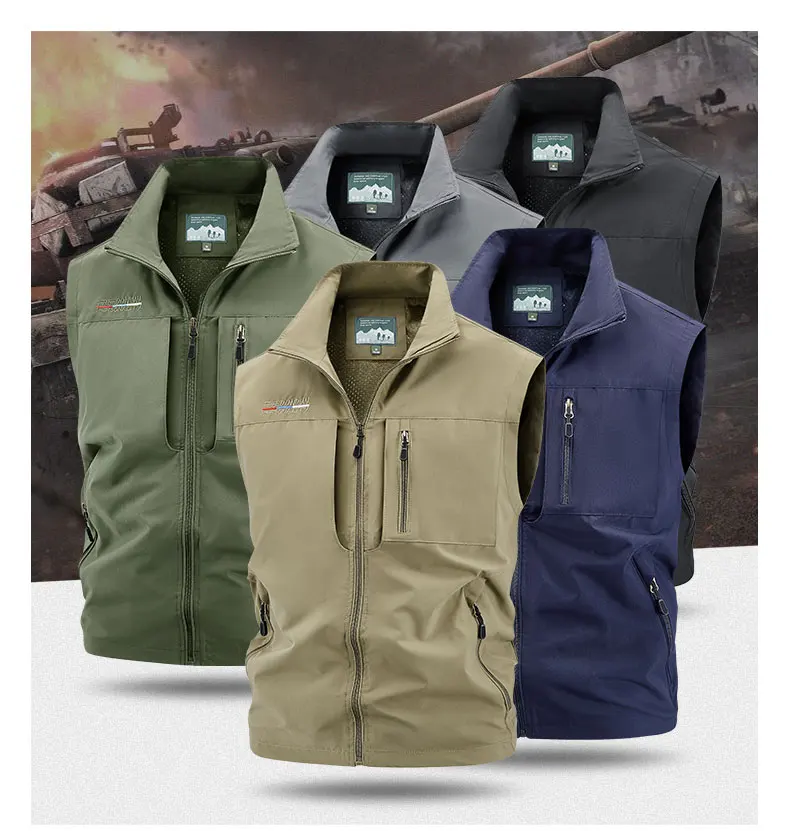 Working Thin Breathable Vest 2025 New Mesh Design Stand Collar Waterproof Sleeveless Jacket Multi-pocket Mountaineering Top 5XL