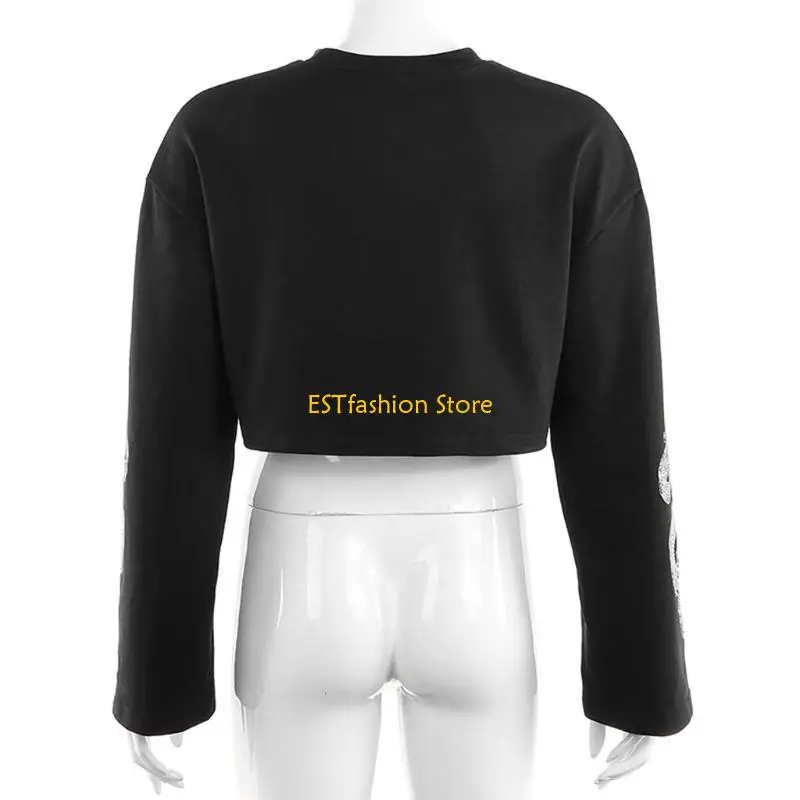 Long sleeves, round neckline, casual pull-on cutout short cropped length.