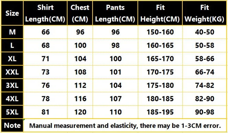• Asian Size: M,L,XL,XXL,3XL,4XL,5XL